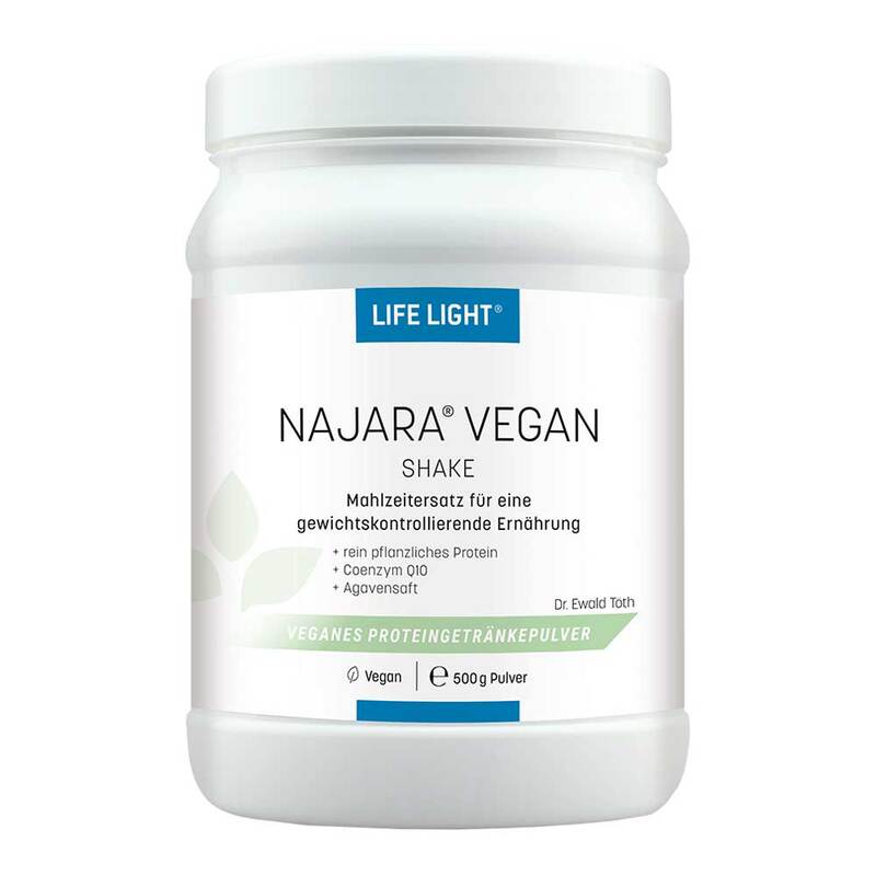 Täglich 1 Portion Najara-Getränkepulver (1 Messlöffel = 40 g Getränkepulver) in 175 ml Reisdrink plus 5 Tropfen Rapsöl anrühren und genießen.