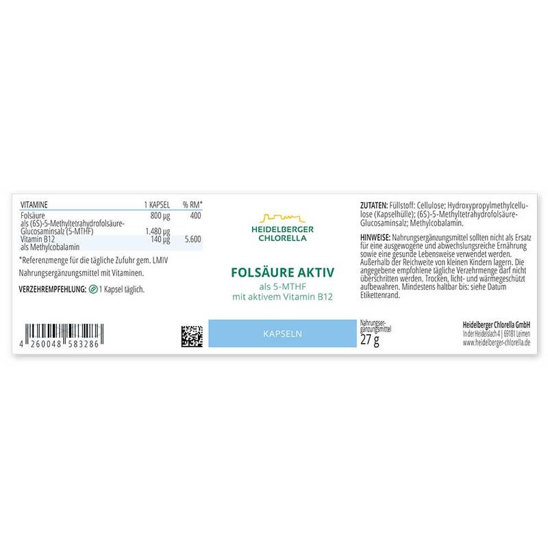 Cellulose (Arbocel®), Kapselhülle: Hypromellose (rein vegetarisch), (6S)-5-Methyltetrahydrofolsäure-Glucosaminsalz, Methylcobalamin.