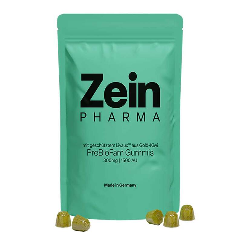Sie enthalten Livaux™ – den geschützten Fruchtpulver-Extrakt aus neuseeländischen Goldkiwis. 4 Gummis (Tagesdosis für Erwachsene) liefern 6.000 Actinidain Units (AU) des natürlichen Kiwi-Enzyms sowie weitere Pflanzenstoffe direkt aus der Frucht.