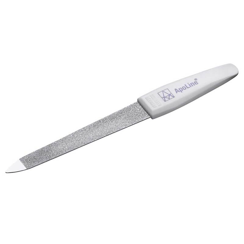 Die ApoLine® Saphir-Nagelfeilen in unterschiedlichen Größen zeichnen sich durch einen gehärteten Federstahl aus, der den Feilen eine lange Nutzungsdauer ermöglicht. Die Kanten sind glatt geschliffen und durch die spezielle Chrom-Beschichtung sind die Feilen auch für Allergiker geeignet.