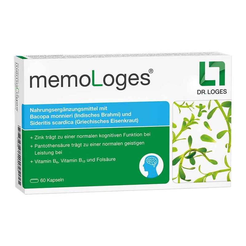 MemoLoges ist ein Nahrungsergänzungsmittel mit Bacopa monnieri (Indisches Brahmi) und Sideritis scardica (Griechisches Eisenkraut) sowie Vitamin B5, B6, B12, Folsäure und Zink. Die Kapseln sind lactosefrei, glutenfrei , zuckerfrei und vegan.