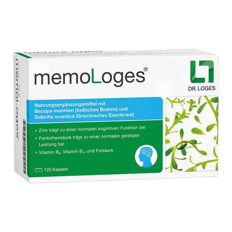 MemoLoges ist ein Nahrungsergänzungsmittel mit Bacopa monnieri (Indisches Brahmi) und Sideritis scardica (Griechisches Eisenkraut) sowie Vitamin B5, B6, B12, Folsäure und Zink. Die Kapseln sind lactosefrei, glutenfrei , zuckerfrei und vegan.