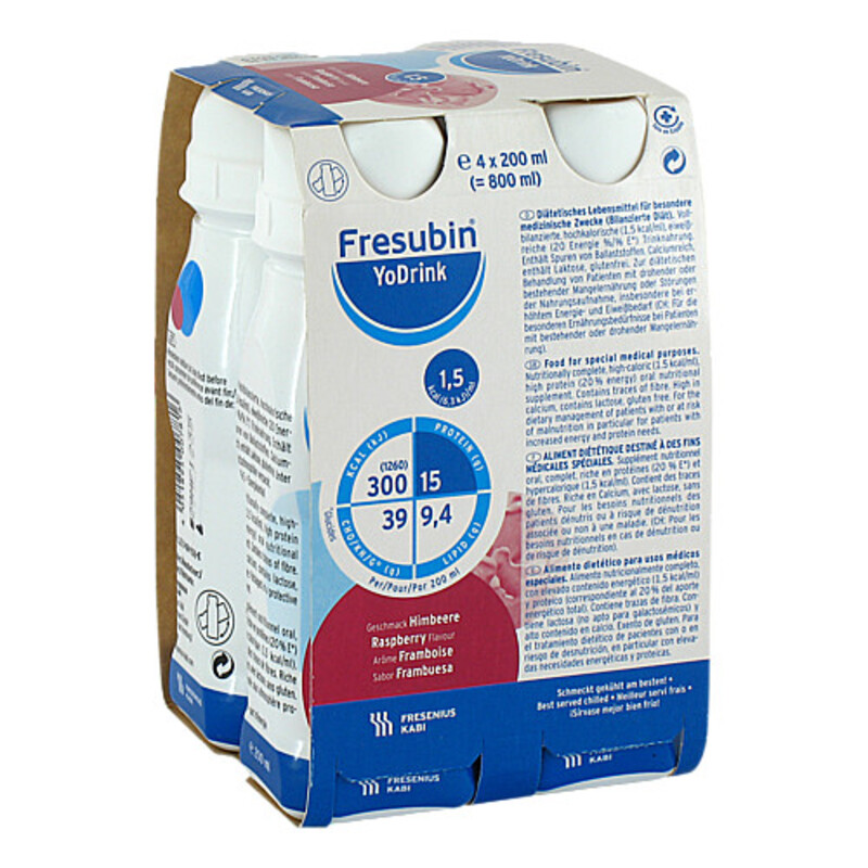 Nicht geeignet bei grundsätzlicher Kontraindikation der enteralen Ernährung, wie z. B. Darmatonie, Ileus, akuten gastrointestinalen Blutungen. Nicht geeignet bei schwerer Malassimilation. Nicht geeignet bei angeborenen Stoffwechseldefekten bzw. Intoleranz gegen einen in Fresubin® YoDrink enthaltenen Inhaltsstoff. Nicht geeignet bei Galaktosämie. Bei schwerem Organversagen wie schwerer Leber- oder Niereninsuffizienz sollte Fresubin® YoDrink abhängig von der Stickstofftoleranz des Patienten mit Vorsicht eingesetzt werden.