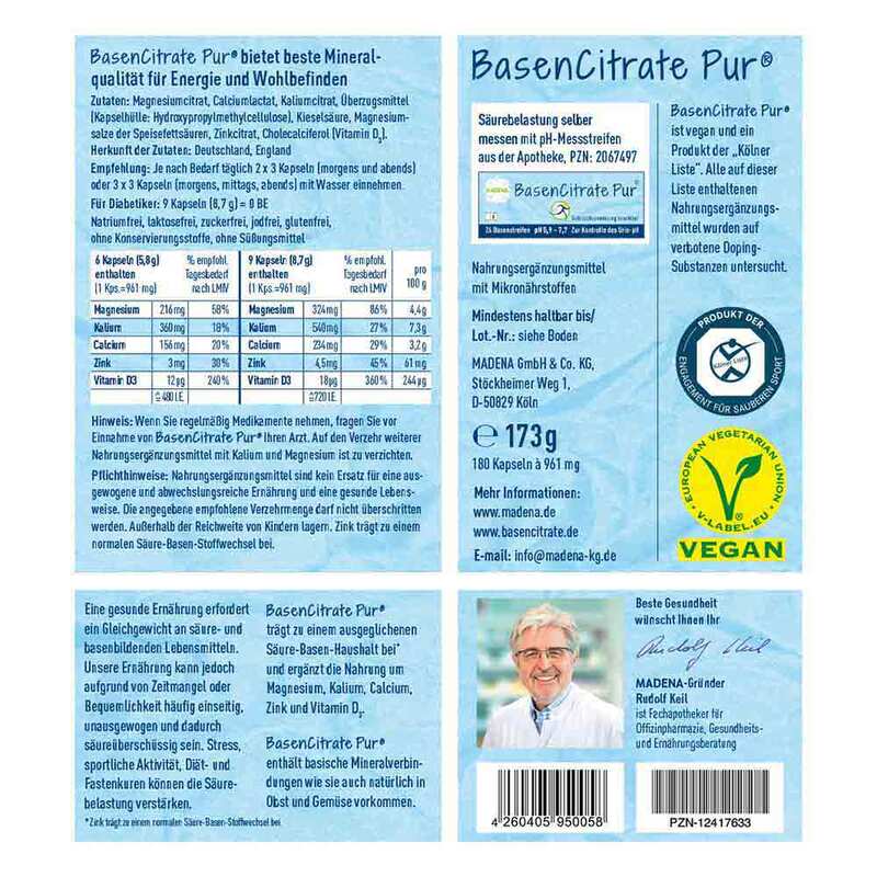 Basen Citrate Pur n.Apotheker Rudolf Keil Kapseln, 180 St