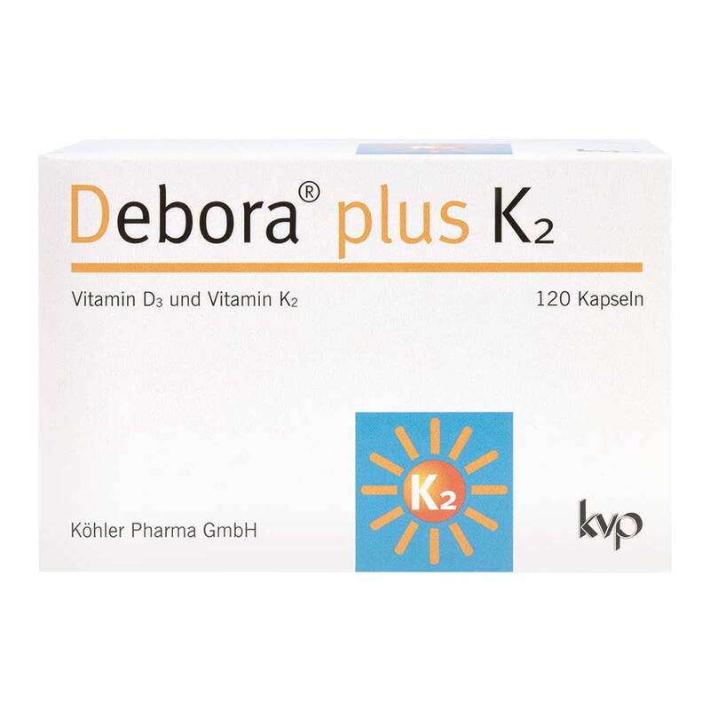 Die wirksamen Substanzen des Präparats stellen Vitamin D3 (Cholecalciferol), sowie Vitamin K2 (als Menachion-7) dar. Da Vitamin D3 und K2 fettlösliche Vitamine sind und diese als Transportmedium pflanzliche Öle benötigen, sind die Gluten-, Fruktose, Hefe- und Laktosefreien Kapseln von Köhler Pharma aufgelöst in nativem Leinsamenöl und Sonnenblumenöl. Dadurch ist die Einnahme von Debora plus K2 auch unabhängig von den Mahlzeiten möglich.