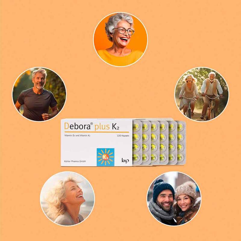 Die regelmäßige Einnahme von Debora plus K2 Kapseln hilft dabei, die benötigten Mengen von Vitamin D und K2 bereitzustellen und dadurch zweifach für gesunde Knochen sorgen.*