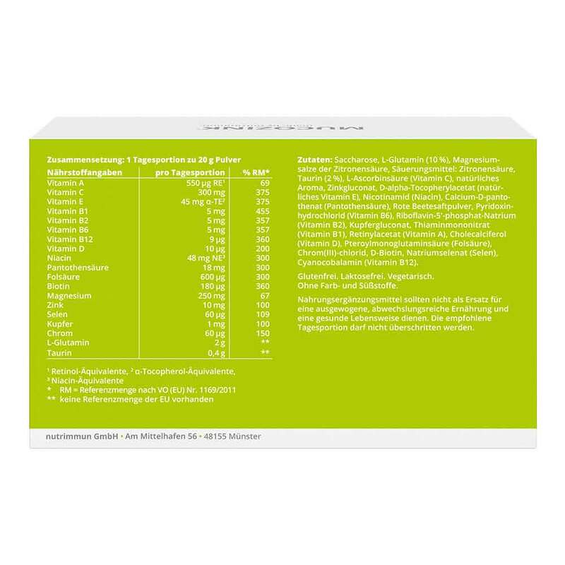 - Nahrungsergänzungsmittel mit Vitaminen, Mineralstoffen, Glutamin und Taurin