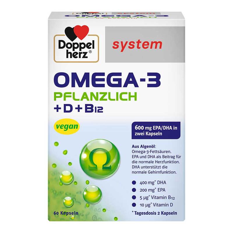 Doppelherz system OMEGA-3 pflanzlich liefert Omega-3-Fettsäuren auf nicht-tierischer Basis. Es werden nur Kapseln pflanzlichen Ursprungs eingesetzt. Sie sind somit ideal für alle, die auf tierische Produkte verzichten wollen.