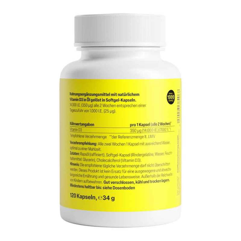 - 14.000 I.E. (350 µg) Vitamin D3 pro Kapsel (Einnahme alle zwei Wochen)