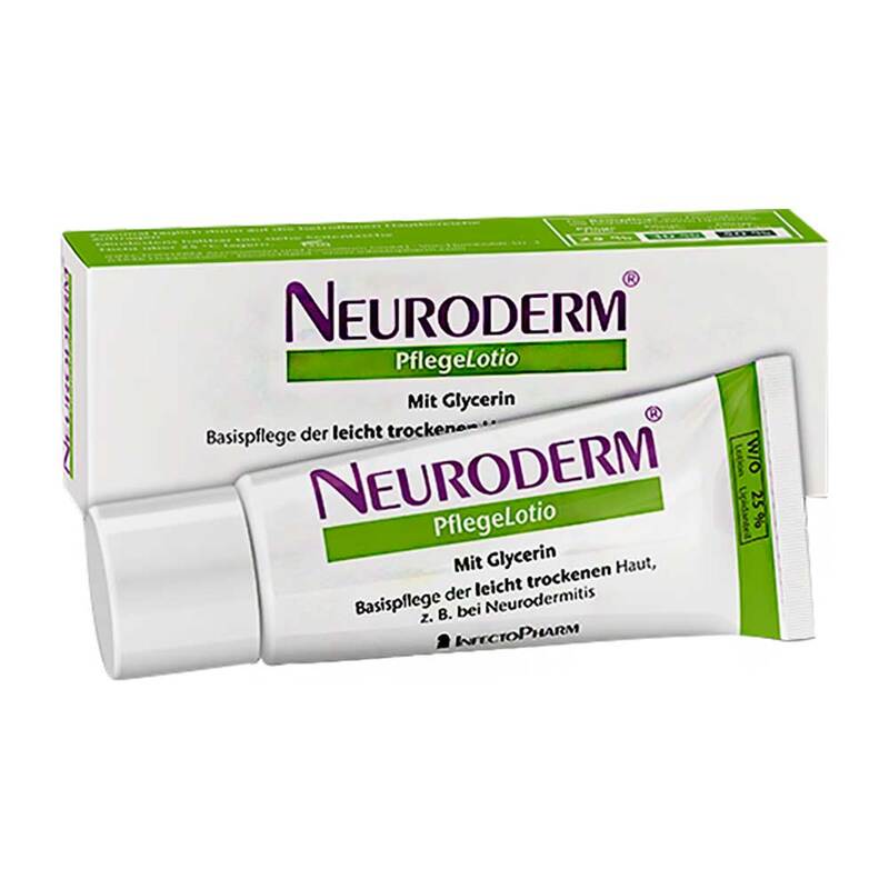 Die Neuroderm PflegeLotio ist eine Lotion vom Wasser-in-Öl-Typ (W/O-Typ). Mit einem Lipidanteil von 25 % zieht sie besonders schnell ein, lässt sich leicht verteilen und hinterlässt ein angenehmes Hautgefühl. Zudem wird die Schutzbarriere der Haut gestärkt. Der hohe Glycerin-Anteil von 20 % in der Neuroderm PflegeLotio spendet der Haut Feuchtigkeit.