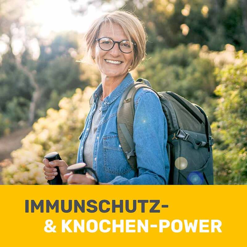Vitamin D trägt zu einer normalen Aufnahme von Calcium bei und steuert die Calcium-Verwertung, indem es zu einer erhöhten Bildung der für die Knochenbildung maßgeblichen Proteine beiträgt. Vitamin K ist als sogenannter Cofaktor für die Aktivierung dieser an der Knochenbildung beteiligten Proteine notwendig. So tragen die Vitamine D und K zum Erhalt normaler Knochen bei.