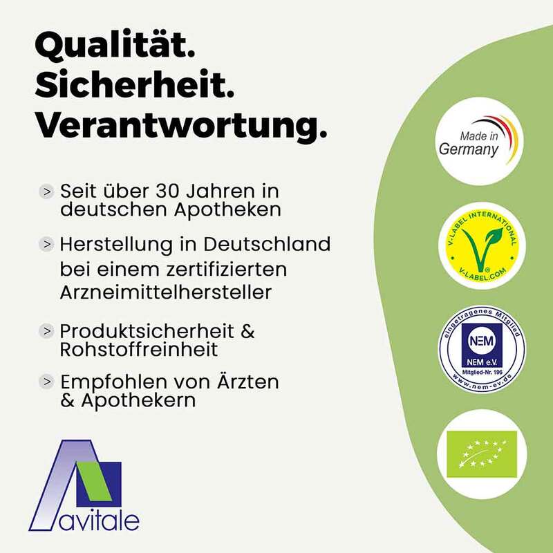 Die tägliche Verzehrempfehlung darf nicht überschritten werden. Nahrungsergänzungsmittel sind kein Ersatz für eine ausgewogene und abwechslungsreiche Ernährung und gesunde Lebensweise.