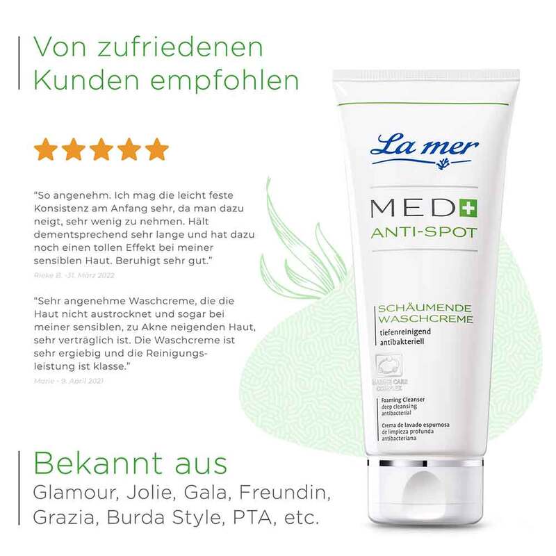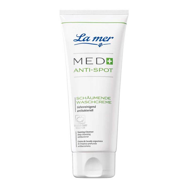 Die La mer Med+ Anti-Spot schäumende Waschcreme ohne Parfum reinigt intensiv, ohne die Haut auszutrocknen und befreit die Haut von störendem Glanz. Sie sorgt für ein verbessertes Hautbild und einen zarten Teint.