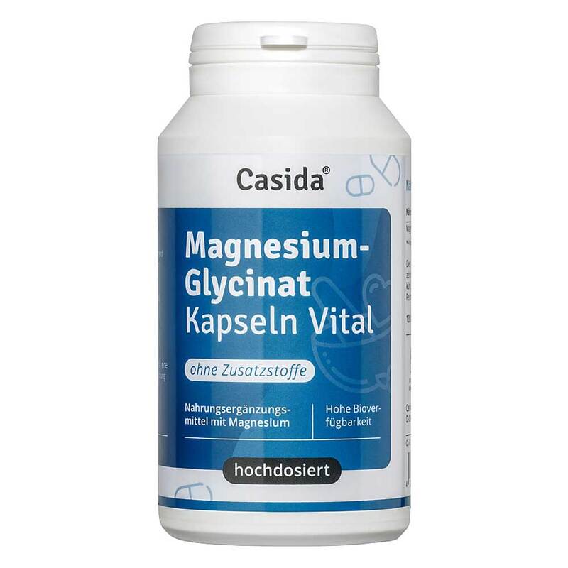 Magnesium gebunden an die Aminosäure Glycin kann als organische Magnesiumverbindung besonders gut vom menschlichen Körper aufgenommen werden. Glycin ist eine Vorstufe körpereigener Radikalfänger und des Kollagens in Knochen, Sehnen und Haut. Es wirkt sich als Botenstoff positiv auf Muskelaktivität, Gedächtnis, Schlaf und Schmerzempfinden aus.