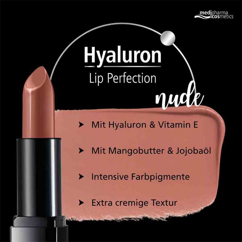 Tipp: Für ein perfektes Gesamtbild kombinieren Sie den Hyaluron Lippenstift mit der Hyaluron Nude Perfection Tagespflege für einen ebenmäßigen Teint und der Mascara med, die das natürliche Wimpernwachstum stimuliert und für einen intensiven Augenaufschlag sorgt.