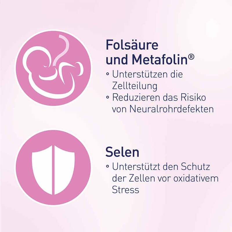 - unterstützt den erhöhten Nährstoffbedarf ab Kinderwunsch und im ersten Schwangerschaftsdrittel