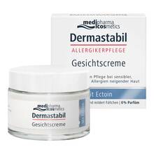 Sensible und zu Allergien neigende Gesichtshaut ist im Alltag unterschiedlichsten Umwelteinflüssen ausgesetzt. Sie braucht ausreichende Pflege, ohne einen Lipidfilm auf der Hautoberfläche zu hinterlassen. Dermastabil Gesichtscreme spendet reichhaltige Feuchtigkeit und pflegt die von externen Stressfaktoren wie Allergenen und schädlichen Umweltschadstoffen belastete Haut. Sie zieht schnell ein und fettet nicht. Das enthaltene Ectoin stärkt und stabilisiert die Hautschutzbarriere, glättet und mildert Fältchen.
