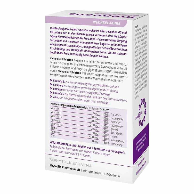 Menoelle Tabletten basieren auf dem patentierten Heilpflanzenextrakt EstroG-100. Die Tabletten enthalten zusätzlich einen Vitamin- und Mineralstoffkomplex.*
