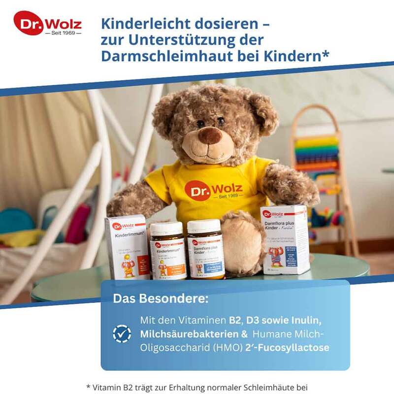 Darmflora plus Kinder + Familie* nicht verwenden, wenn am selben Tag Muttermilch oder andere Lebensmittel mit zugesetzter 2-O-Fucosyllactose verzehrt werden.