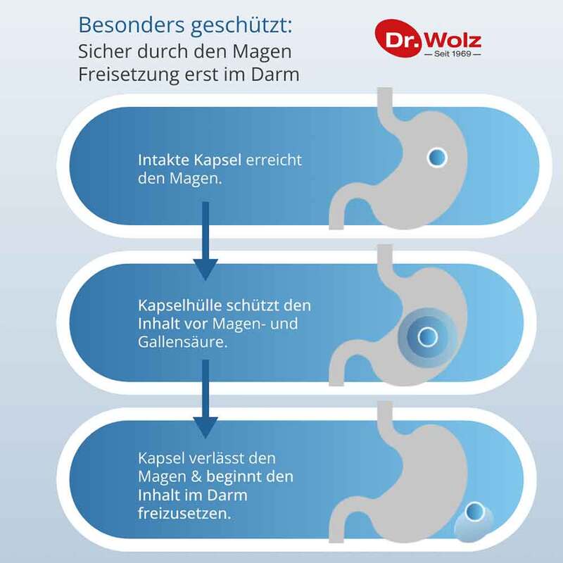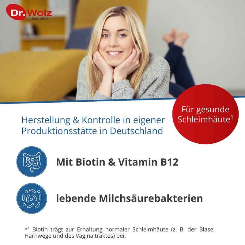 Kapselinhalt: Maisstärke, lebende Milchsäurebakterien (Lactobacillus acidophilus, Lactobacillus reuteri, Lactobacillus rhamnosus), Vitamin B12, Biotin.