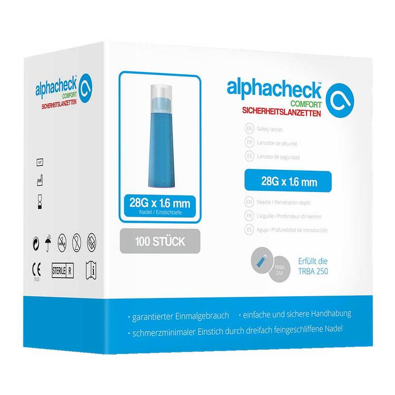 Alphacheck comfort Sicherheitslanzett.28 G 1,6 mm, 100 St