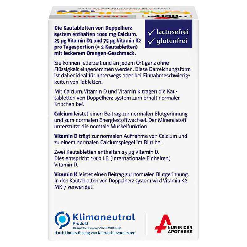 Doppelherz Calcium 1000 + D3 + K2 system Kautabletten, 60 St