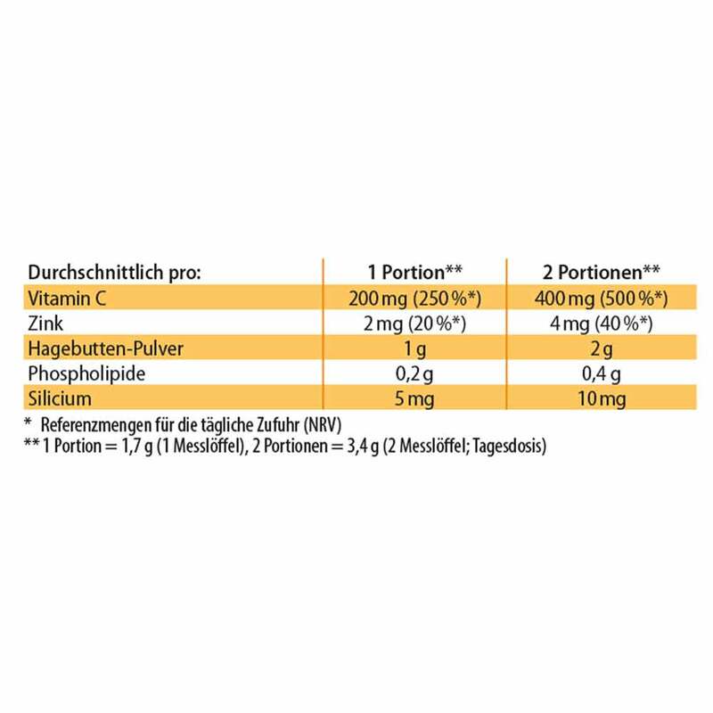 - mit Vitamin C, Zink und besonders viel Hagebutte