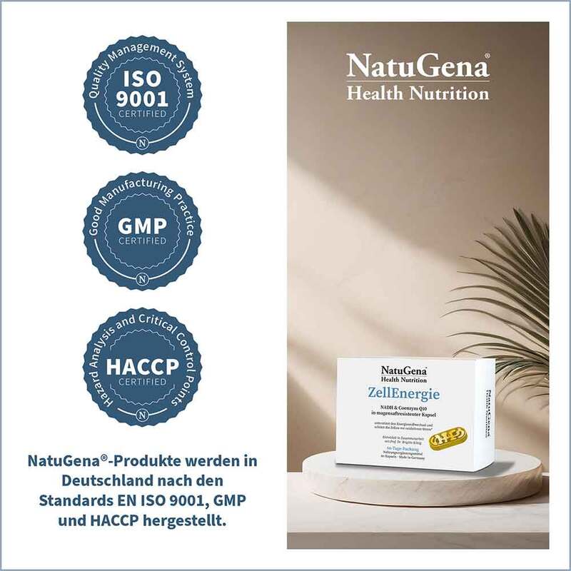- mit 20 mg NADH, 250 mg Coenzym Q10 und 150 mg R-Alpha-Liponsäure