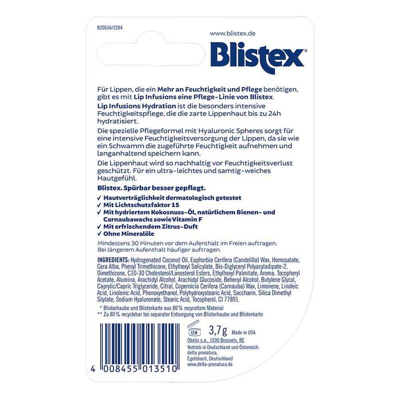 Blistex Lip Infusions Hydration Stift, 3.7 g