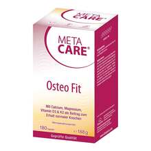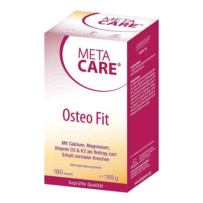 Meta Care Osteo Fit enthält die wichtigen Knochen-Nährstoffe Calcium, Magnesium, Vitamin D3 und Vitamin K2.* Ergänzt wird die Formel durch Bor. Die Mineralstoffe Calcium und Magnesium sind wesentlich für den Erhalt normaler Knochen und Zähne.* Durch die Einnahme bestimmter Medikamente oder intensiver körperlicher Belastung kann der Bedarf an diesen wichtigen Mineralstoffen steigen.