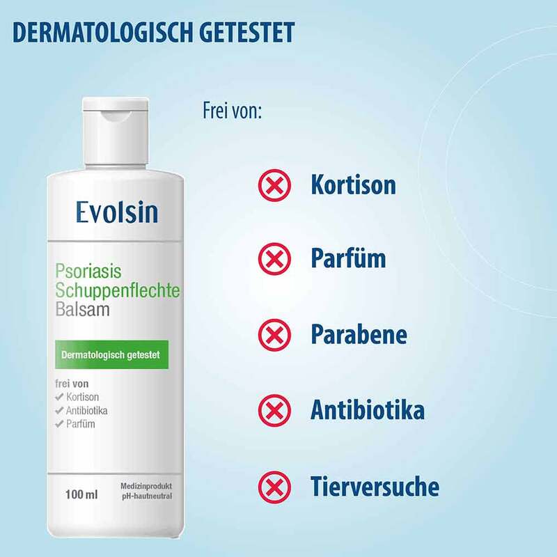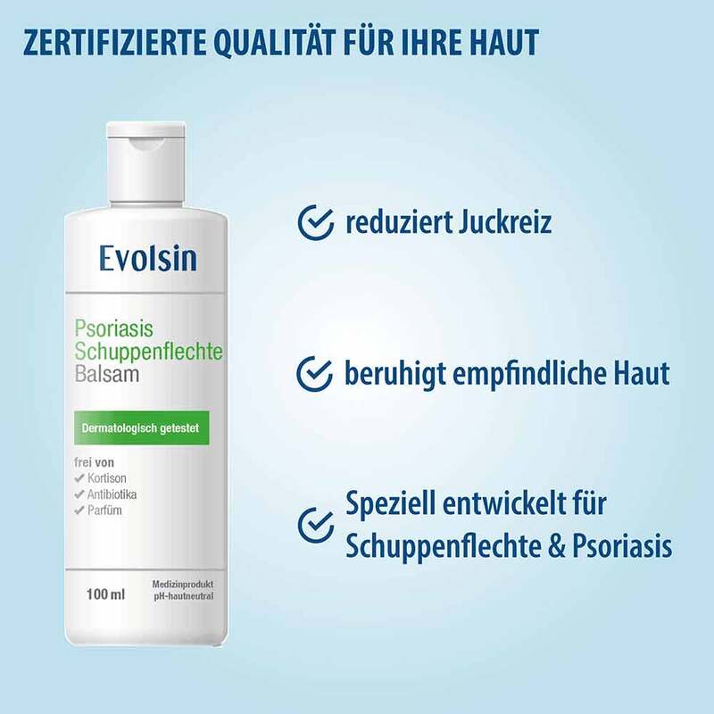- Evolsin Psoriasis Schuppenflechte Balsam ist ein in der EU produziertes und zugelassenes Medizinprodukt.