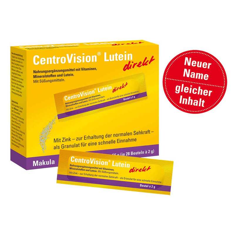 CentroVision Lutein direkt ist ein Nahrungsergänzungsmittel und enthält eine Mikronährstoffkombination aus den für die Augen sehr wichtigen natürlichen Carotinoiden Lutein und Zeaxanthin, den Vitaminen C, E und Niacin (B3) sowie den Spurenelementen Zink, Kupfer und Selen.