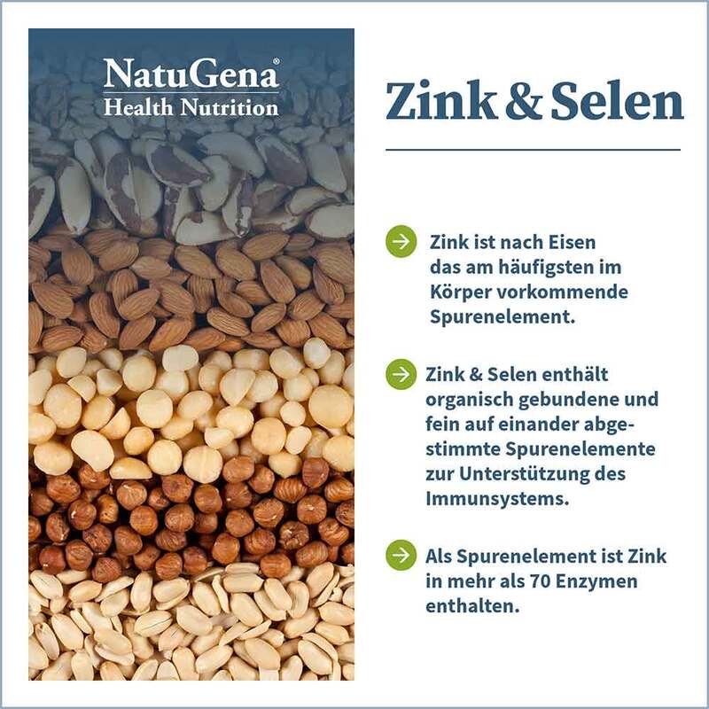 Zink & Selen enthält organisch gebundene und fein auf einander abgestimmte Spurenelemente zur Unterstützung des Immunsystems.* Zink ist nach Eisen das am häufigsten im Körper vorkommende Spurenelement.