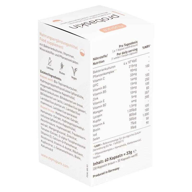 Nupure probaskin enthält zwei Sorten von Kapseln, weiße und braune Kapseln.