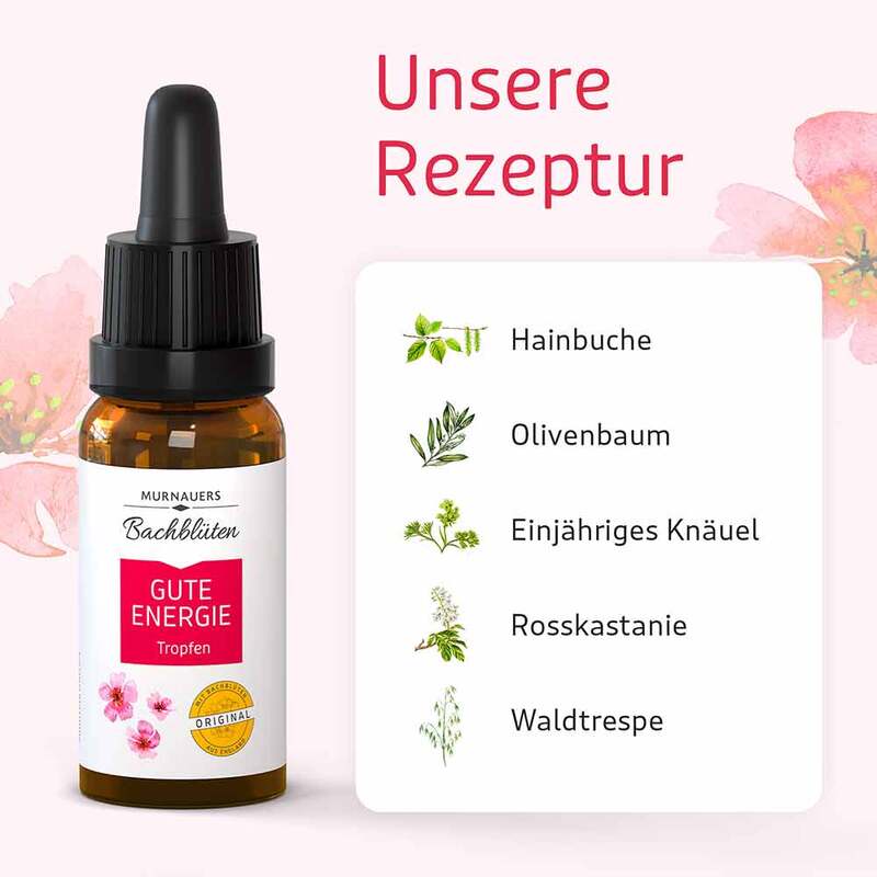 Die Murnauers Bachblüten Gute Energie Tropfen enthalten eine besondere Kombination aus fünf Original Bachblüten.