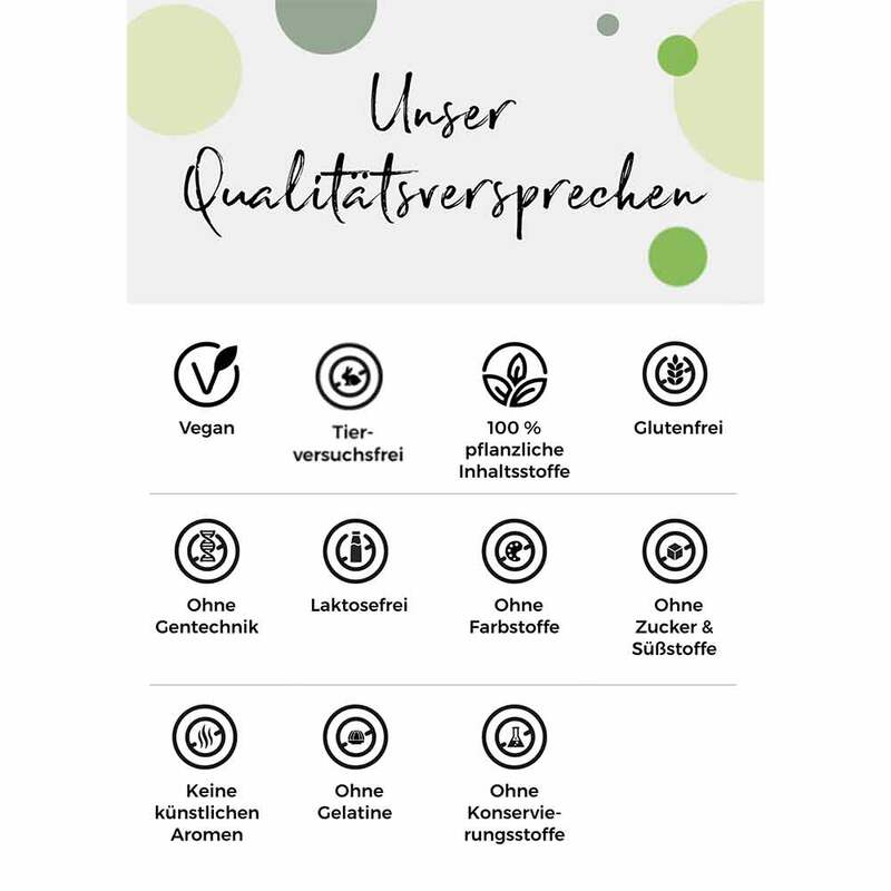 Die angegebene empfohlene tägliche Verzehrmenge darf nicht überschritten werden. Nahrungsergänzungsmittel dienen nicht als Ersatz für eine ausgewogene und abwechslungsreiche Ernährung sowie eine gesunde Lebensweise.