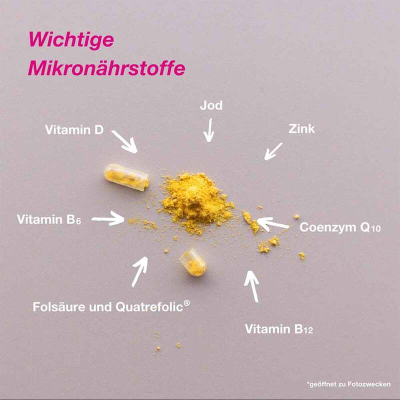 So unterstützt Zink u. a. die normale Fruchtbarkeit und Fortpflanzung und hat zudem eine Funktion bei der Zellteilung. Auch die zusätzliche Einnahme von Folsäure ist bei Frauen mit Kinderwunsch sinnvoll, da sie nicht nur eine Funktion bei der Zellteilung hat, sondern auch den Folatspiegel erhöht und dadurch das Risiko für Neuralrohrdefekte reduzieren kann. Die positive Wirkung stellt sich bei einer ergänzenden Aufnahme von 400 µg Folsäure täglich über einen Zeitraum von mindestens 1 Monat vor und bis zu 3 Monaten nach der Empfängnis ein.