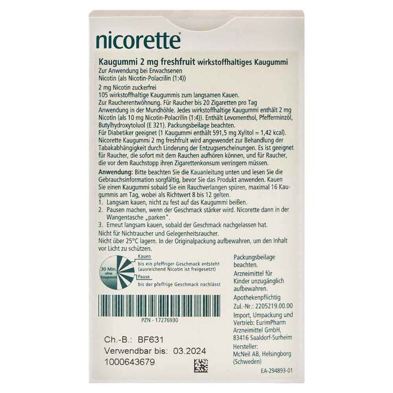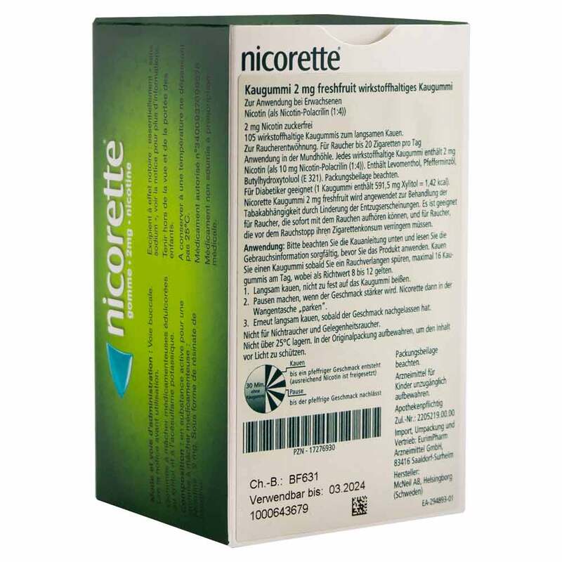Nicorette 2 mg freshfruit Kaugummi, 105 St