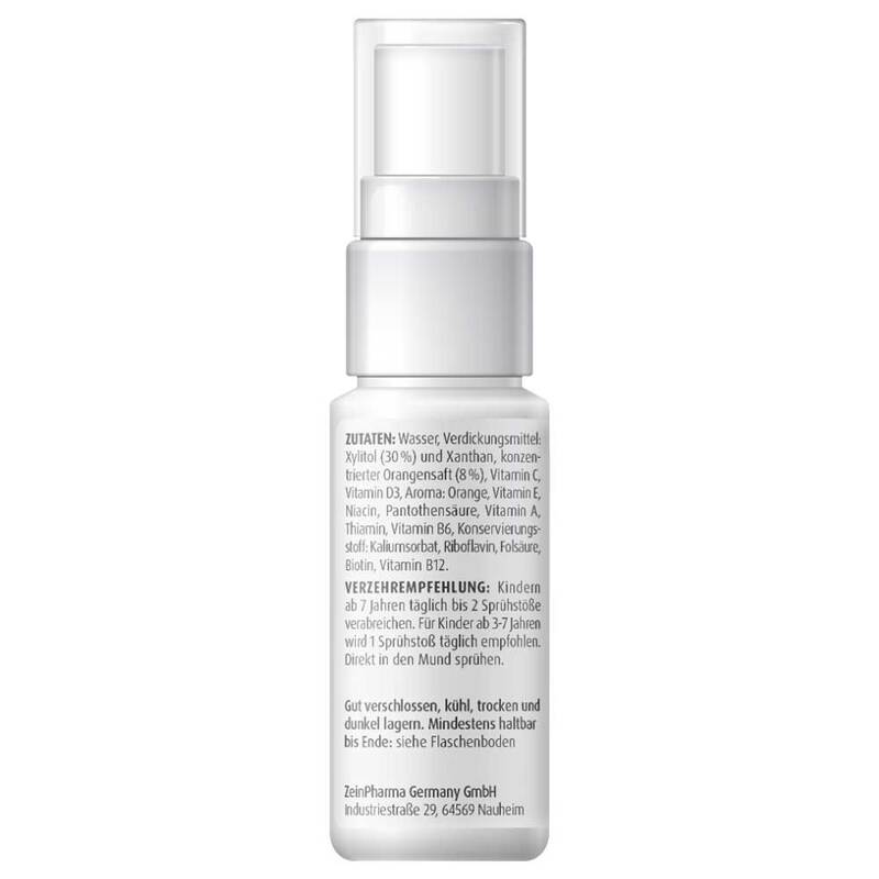 Kindern ab 7 Jahren täglich 2 Sprühstöße verabreichen. Für Kinder ab 3–7 Jahren wird 1 Sprühstoß täglich empfohlen. Direkt in den Mund sprühen.