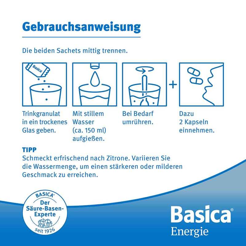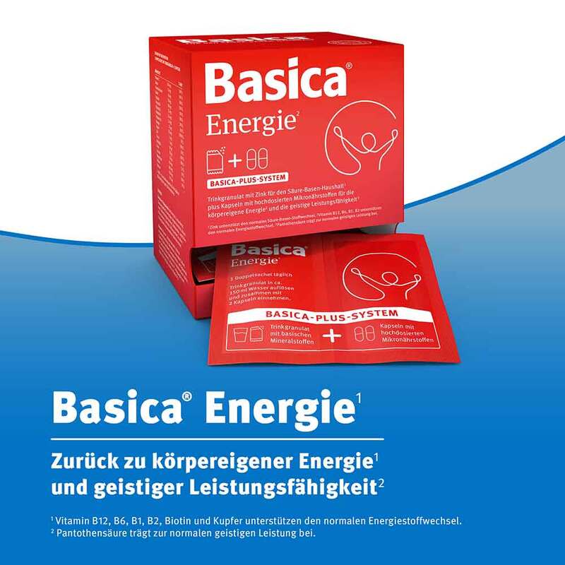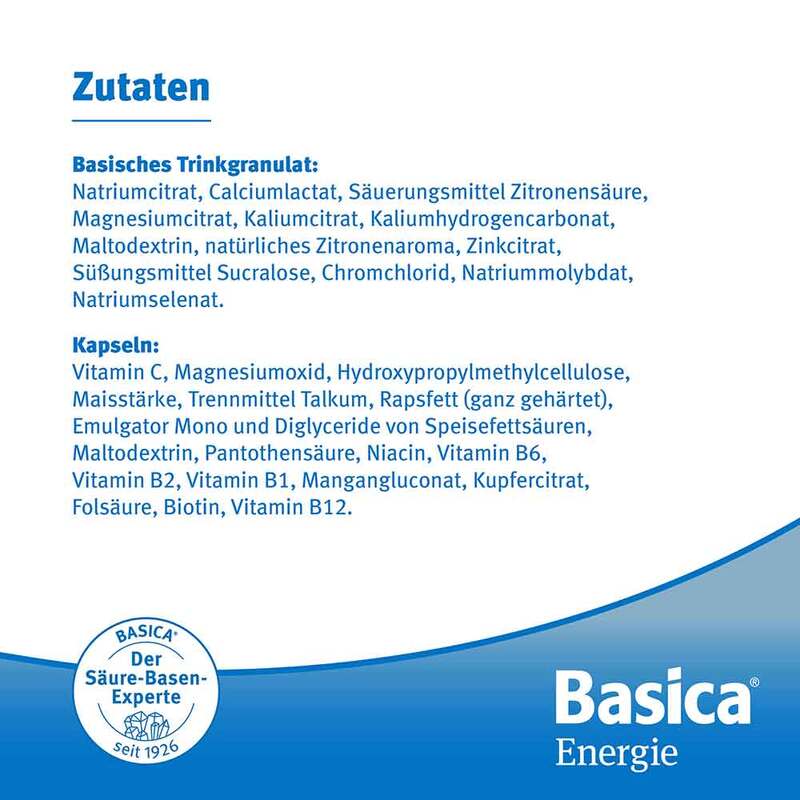 Im Basica Trinkgranulat und Kapseln sind hochdosierte Mikronährstoffe für die körpereigene Energie* und die geistige Leistungsfähigkeit* enthalten. Das basische Trinkgranulat unterstützt mit Zink den normalen Säure-Basen-Stoffwechsel.*