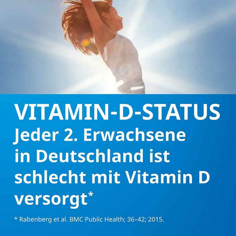 Jeder zweite Erwachsene in Deutschland ist schlecht mit Vitamin D versorgt.** Über eine ausgewogene Ernährung kann man versuchen, eine Vitamin-D-Unterversorgung auszugleichen – dies ist jedoch schwierig. Wenn man 1000 I.E. Vitamin D3 am Tag über die Nahrung aufnehmen möchte, müsste man z. B. 2 kg Goudakäse (45 % Fett i. Tr.) oder 15 Eier essen.***