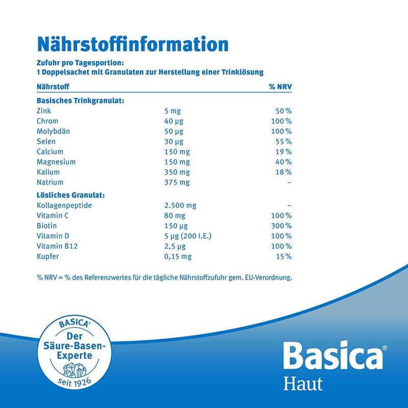 * Kupfer trägt zur Erhaltung von normalem Bindegewebe bei. Kupfer trägt zu einer normalen Hautpigmentierung bei. Vitamin C trägt zu einer normalen Kollagenbildung für eine normale Funktion der Haut bei. Vitamin C und Selen tragen dazu bei, die Zellen vor oxidativem Stress zu schützen. Zink, Calcium, Magnesium und die Vitamine B12 und D haben eine Funktion bei der Zellteilung. Calcium hat eine Funktion bei der Zellteilung und -spezialisierung. Biotin trägt zur Erhaltung normaler Haut bei.
