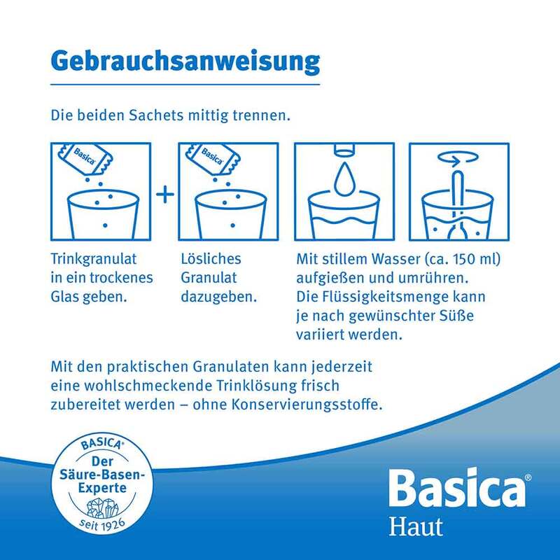 Sachet mittig trennen. Trinkgranulat in ein trockenes Glas geben. Lösliches Granulat dazugeben. Mit stillem Wasser (ca. 150 ml) aufgießen und umrühren. Die Flüssigkeitsmenge kann je nach gewünschter Süße variiert werden.