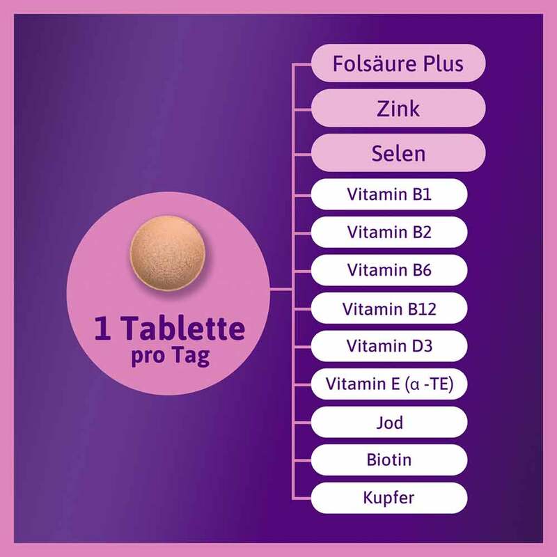 Schwangerschaftsvitamine mit Folsäure Plus und weiteren ausgewählten Nährstoffen wie z.B. Vitamin D und Jod - speziell entwickelt für Ihren Nährstoffbedarf ab Kinderwunsch