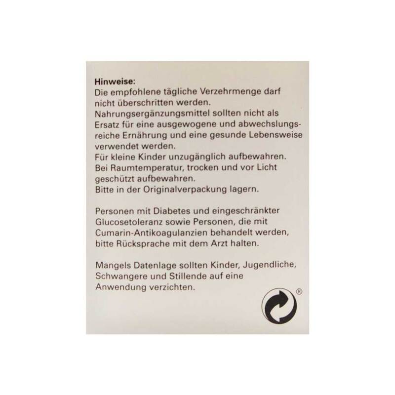 Die angegebene empfohlene tägliche Verzehrmenge darf nicht überschritten werden. Nahrungsergänzungsmittel dienen nicht als Ersatz für eine ausgewogene und abwechslungsreiche Ernährung sowie eine gesunde Lebensweise.