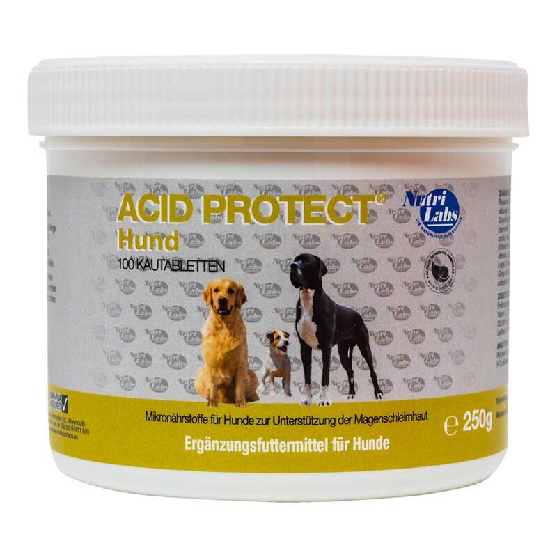 Acid Protect für Hunde ist ein Ergänzungsfuttermittel zur Unterstützung der Magenschleimhaut. Manche Hunde haben, ebenso wie wir Menschen, von Natur aus einen besonders empfindlichen Magen, dazu kommen spezielle für viele Hunde zutreffende Belastungen wie z.B. Schneefressen oder die beiläufige Aufnahme von Unrat oder verdorbenen sowie ungeeigneten Lebensmitteln. Die Folgen davon sind oft Sodbrennen und häufiges Erbrechen.