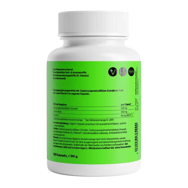 - hohe Wirkstoffkonzentration: jede Kapsel mit 500 mg Rutin aus reinem, natürlichem Blütenknospen-Extrakt des Japanischen Schnurbaums (Sophora Japonica Extrakt)