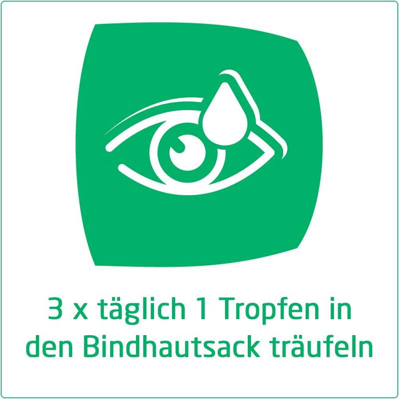 Soweit nicht anders verordnet, 3-mal täglich 1 Tropfen in den Bindehautsack des betroffenen Auges träufeln.
