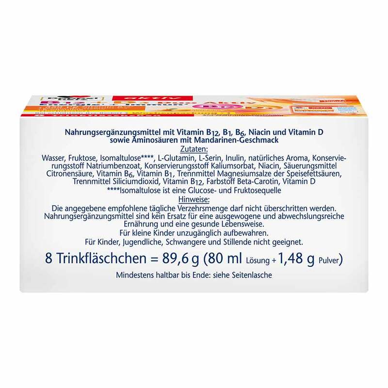 Nahrungsergänzungsmittel mit Vitamin B12, B1, B6, Niacin und Vitamin D sowie Aminosäuren mit Mandarinen-GeschmackZutaten