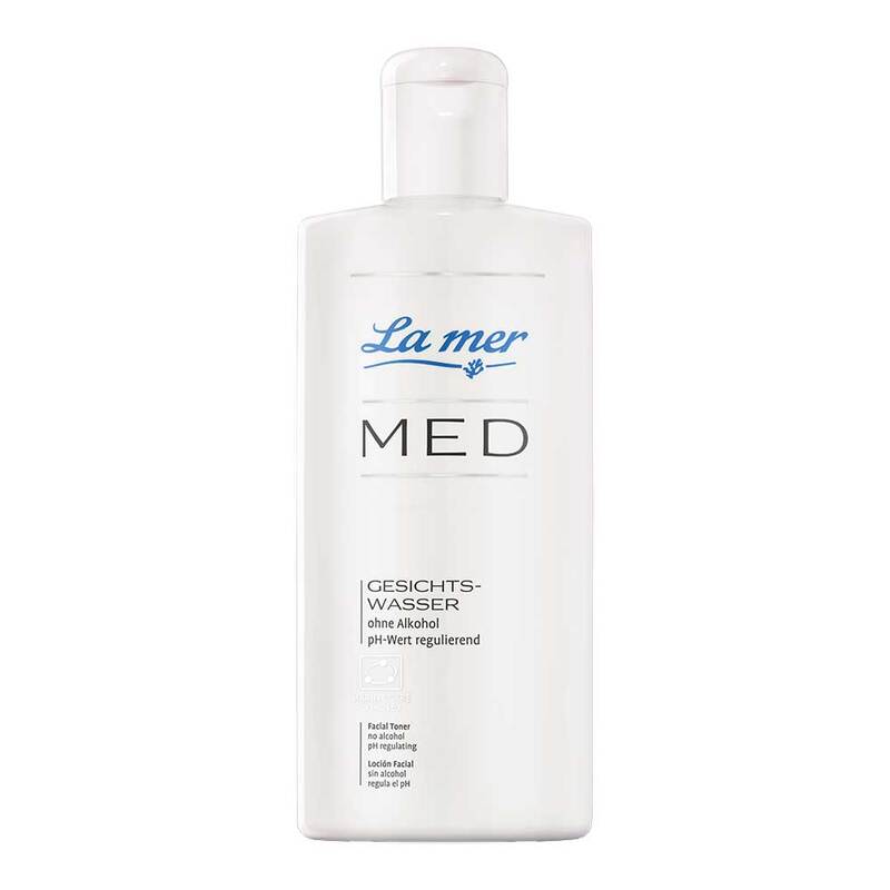 Das La mer Med Gesichtswasser entfernt besonders sanft nach der Reinigung verbliebende Rückstände und stellt den optimalen pH-Wert wieder her. Es enthält keinen Alkohol.